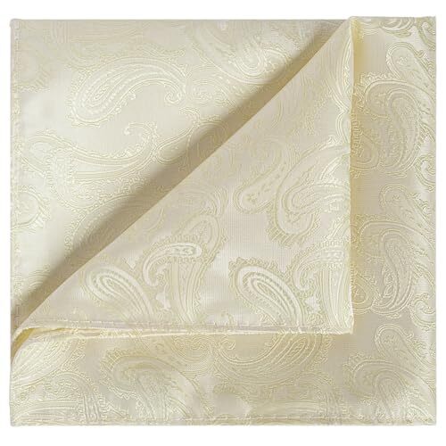 Mens Paisley Pocket Square Hanky Cream Ivory