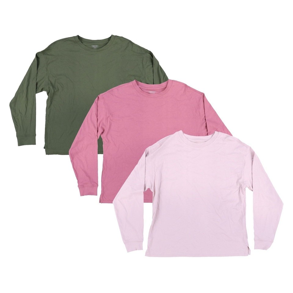 Calvin Klein Women's T Shirt Long-Sleeve Crewneck Cotton Comfort Solid Top New
