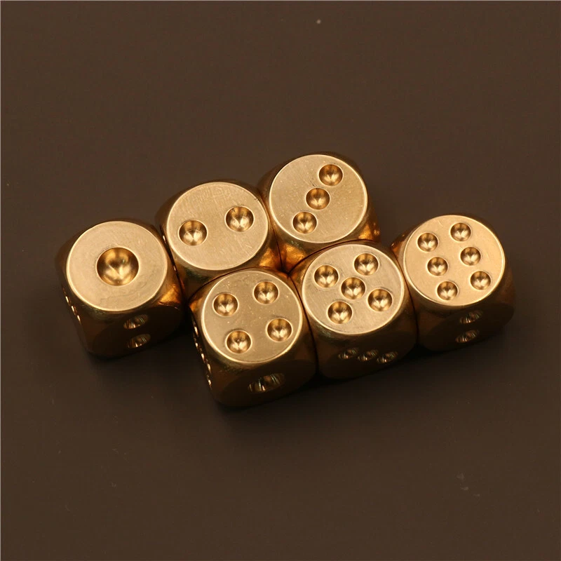 6 Stück Massive Messing Würfel Spielzeug 13 mm Sechsseitig Quadrat Metall Würfel Brettspiel Mathe Neu