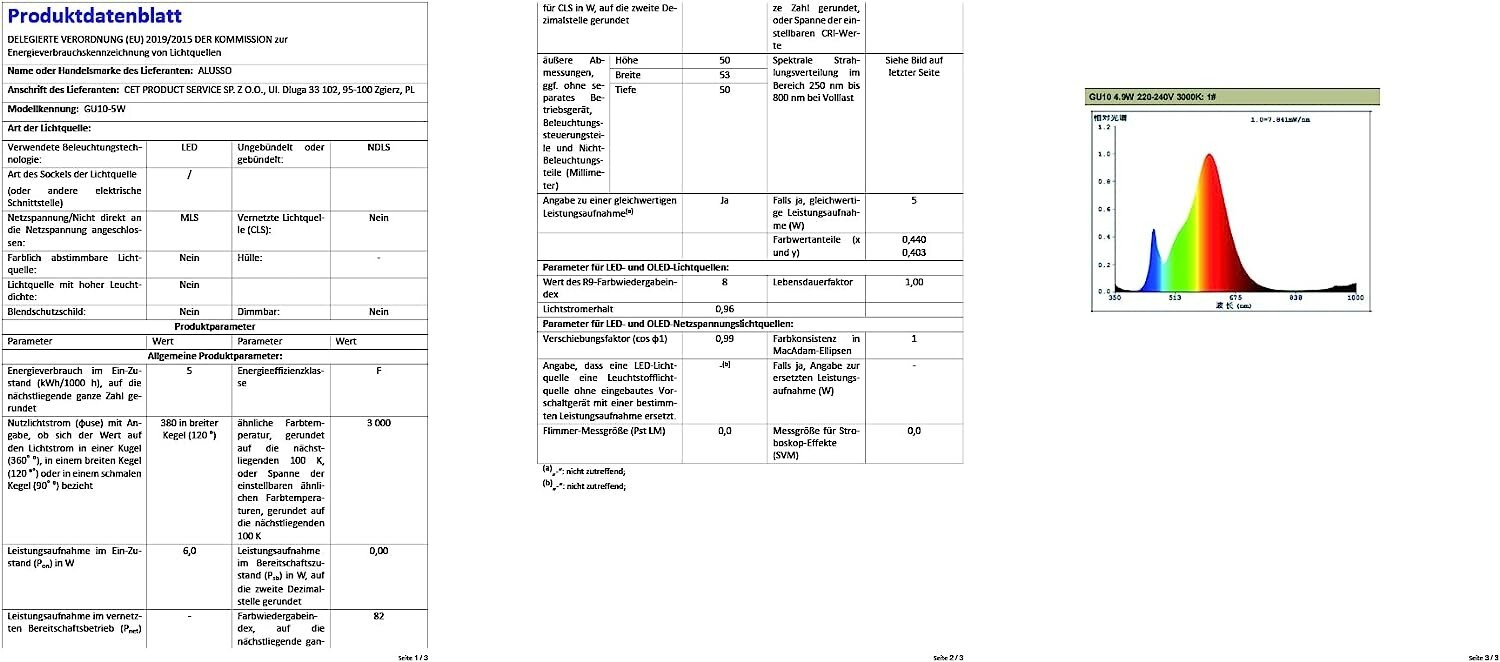 - LED-Leuchtmittel mit GU10-Sockel und 5W Leistung in Warmweiß,