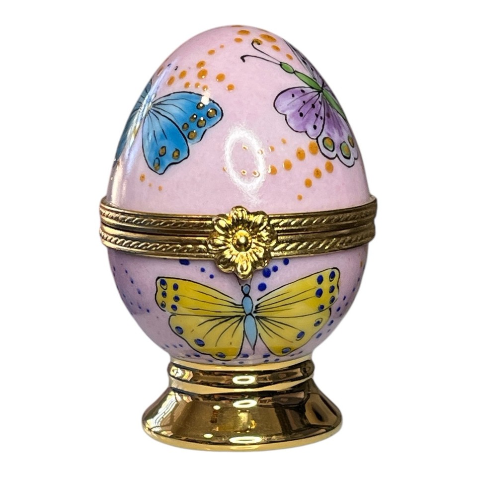 Vintage Atelier de Limoges Peint Main handbemalt Ei Schmetterling Box Frankreich 1980er