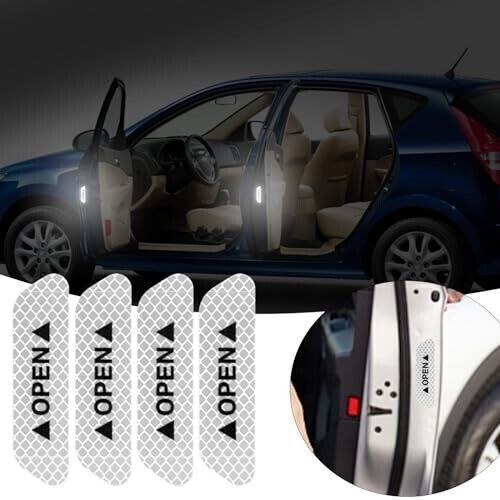 4 Stück Weiß Auto Tür Öffnen Warnung Reflektierende Aufkleber Nacht Sicherheit Leuchtende Abziehbild