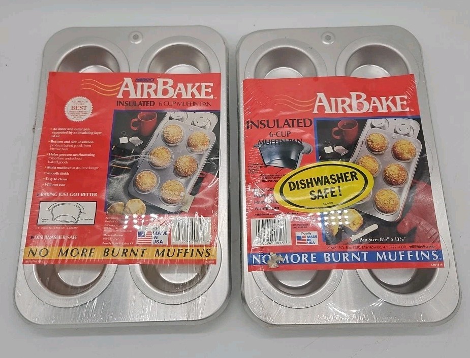 (2) Vintage Mirro Luft Backen Muffinform 6 Cupcake Aluminium Isoliert Versiegelt Neu