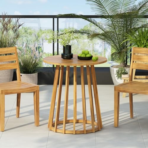Fenton Patio Garden Rustic Acacia Wood Dining Table, Outdoor Round Top Bistro