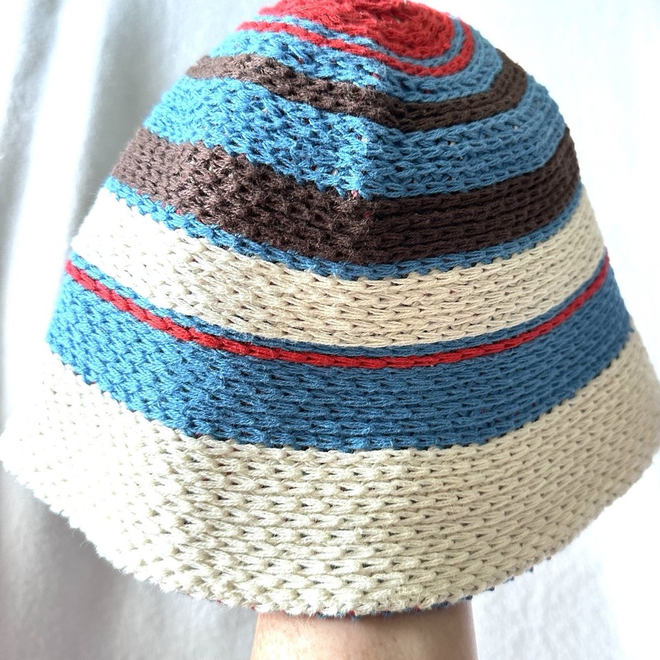 Urban Outfitters Kelly gestreifter gehäkelter Fischerhut weiß blau braun Einheitsgröße