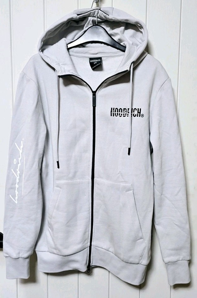 NEU OHNE ETIKETT HOODRICH HOODIE JACKE REISSVERSCHLUSS GRAU WEISS UND SCHWARZ GRÖSSE XS 10 12 OVERSIZED