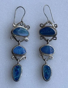 Vintage 925 Sterling Silber Blau Faux?Opal Ohrhänger #10