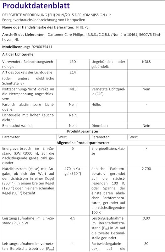 - Philips 4W Leuchtmittel mit E14 Sockel und 21W - 40W Leistung Leistung,