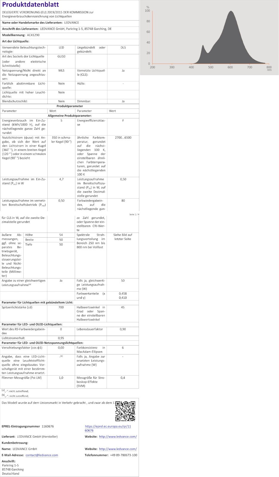 OSRAM SMART+ LED Spot GU10 Zigbee DIMM 4,7W wie 50W 45° Tunable White