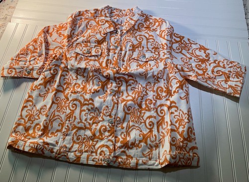 D & Co Denim and Company weiße und orange Stretch-Denimj acke Größe 3X