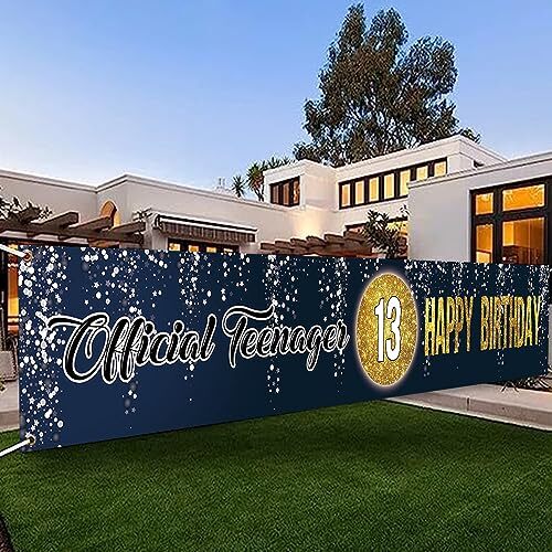 118 x 20 Inches Happy 13th Birthday Yard Banner Sign Blue Flash Official Youth
