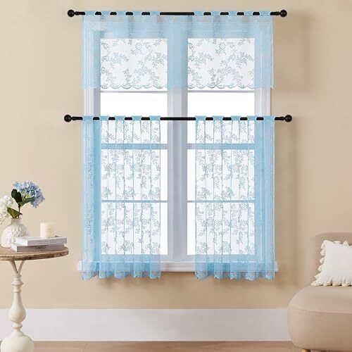 Sheer curtians 36 inches Long for Living Room, 2 Panels 26W × 36L Light Blue