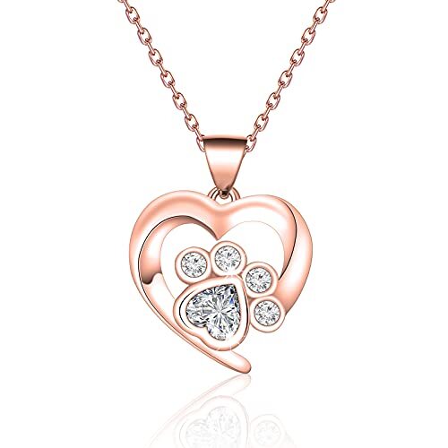 Pet Lover Gifts Paw Print Necklace Cubic Zirconia Puppy Dog rose gold necklace