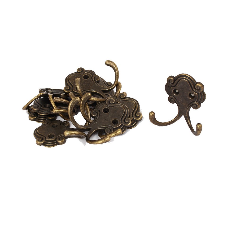 55mm x 53mm Vintage Style Wall Mounted Clothes Hat Double Hook Hanger 10PCS