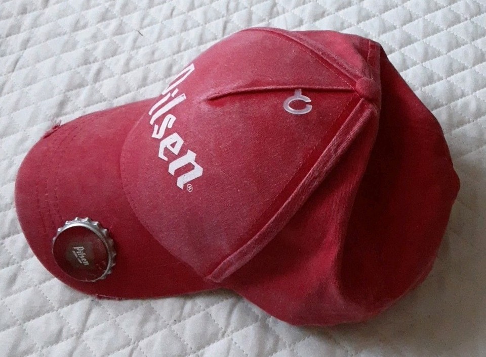 Neu mit Etikett Costa Rica Pilsen Bier Strapback Mütze rot mit Flaschenversch lussöffner