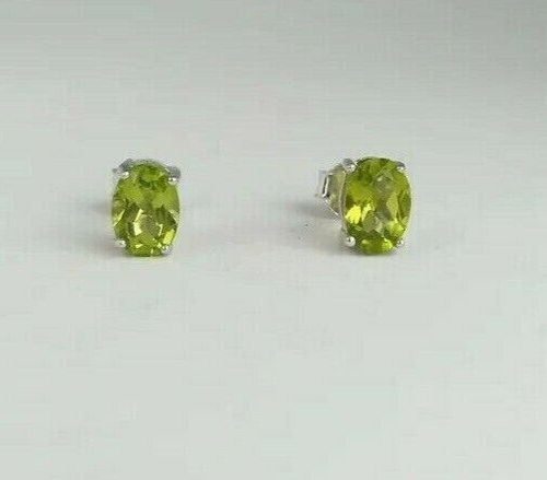5x7mm Oval Created Peridot Women's Solitaire Stud Earing 925 Sterling Silver