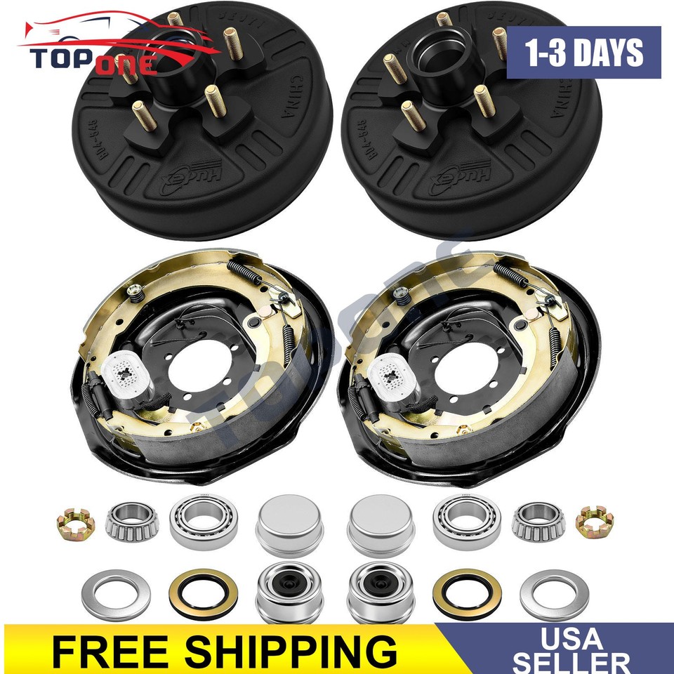 Pair Electric Trailer Manual Adjusting Brake 5-4.5" Hub Drum Kit For 3500lb Axle