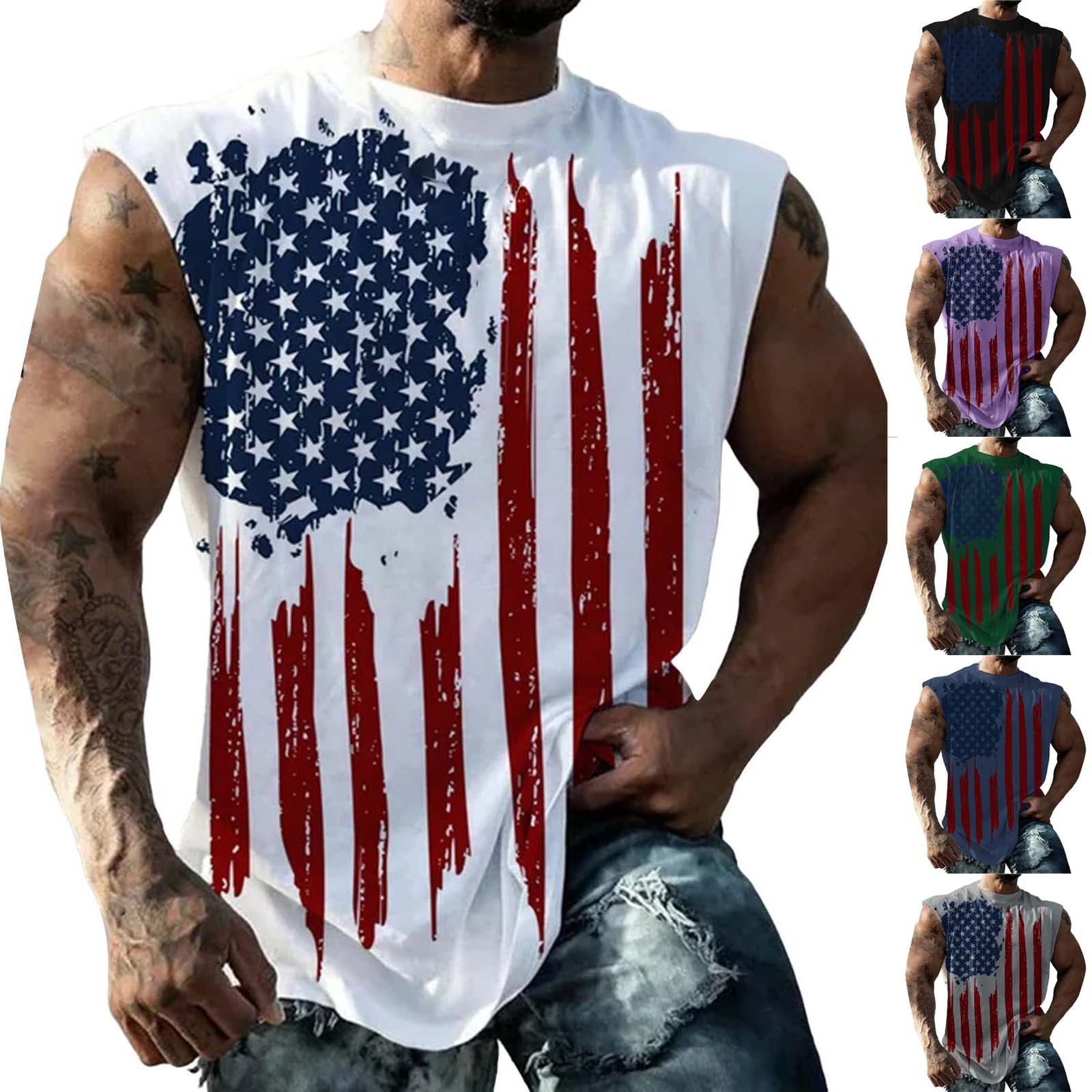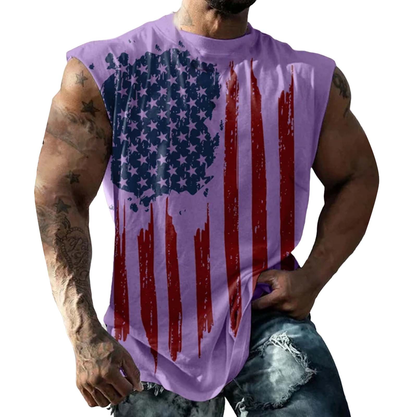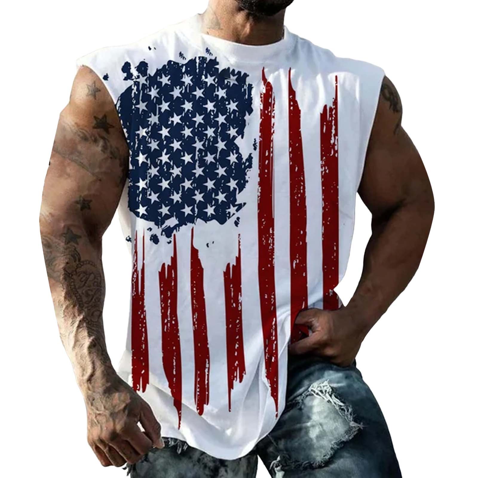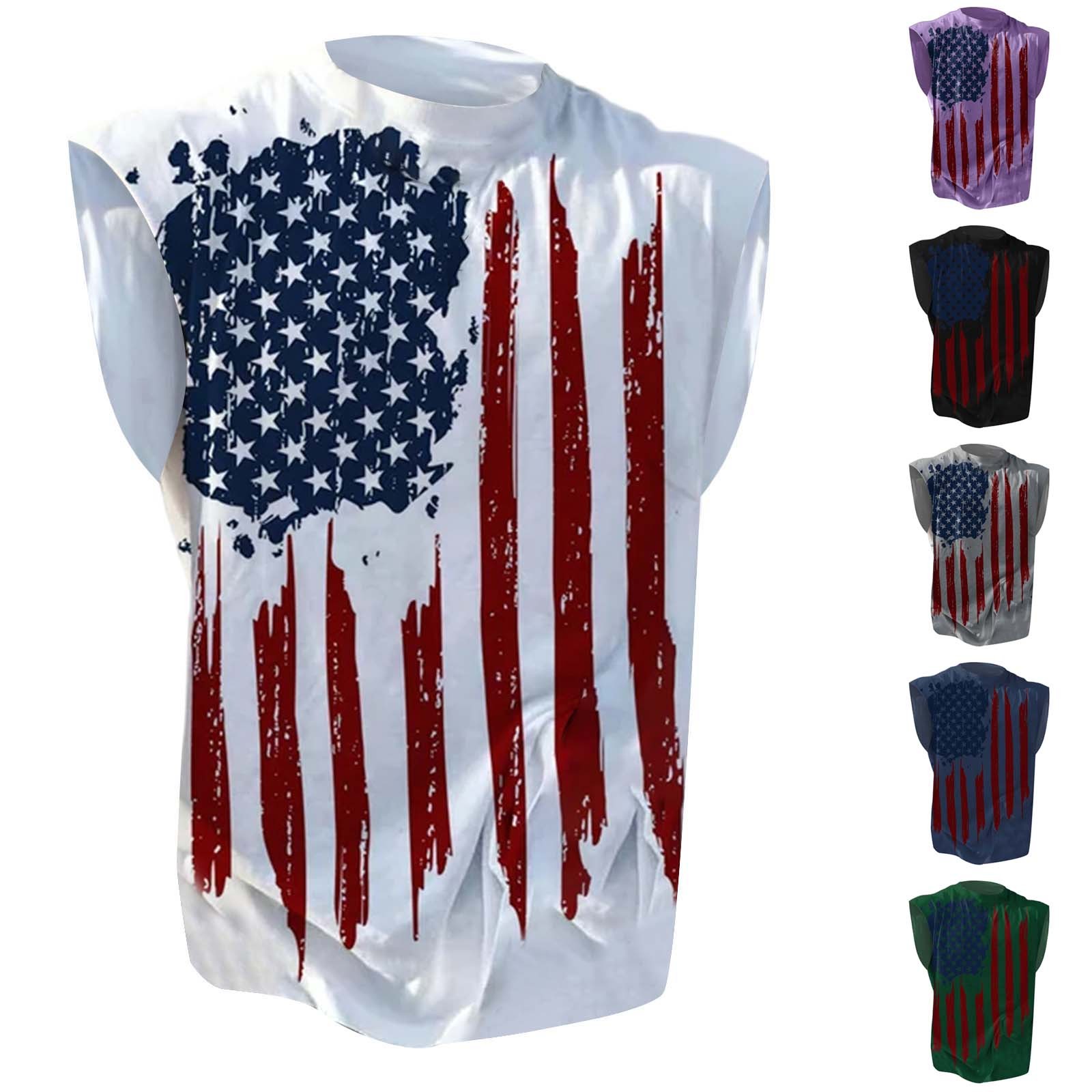 Summer Men's American Flag Patriotic Short Sleeve T Shirt Casual Blouse Tops