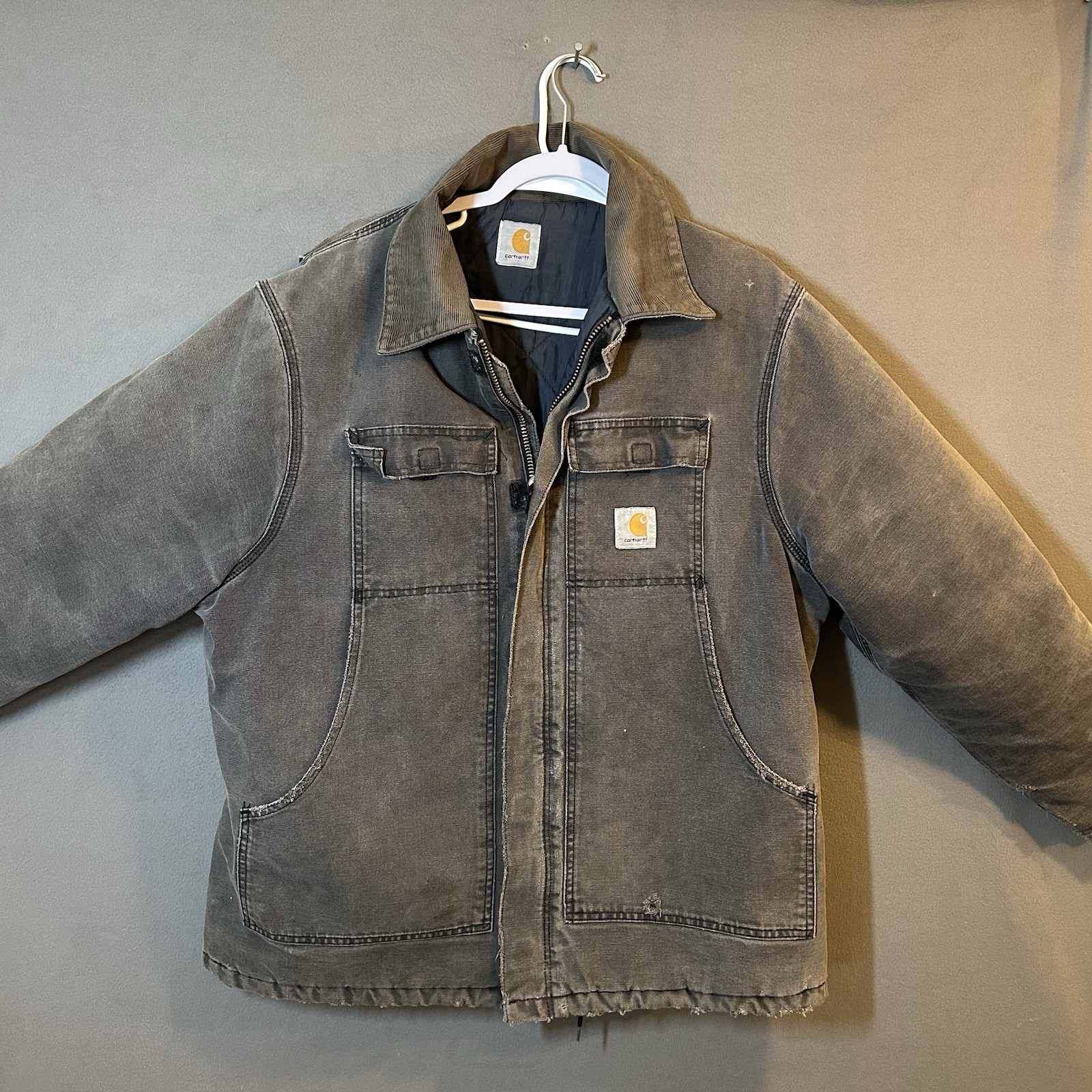 Vintage Carhartt Arctic Duck Canvas Barn Coat Adult Fits L Green Grey Light Distress