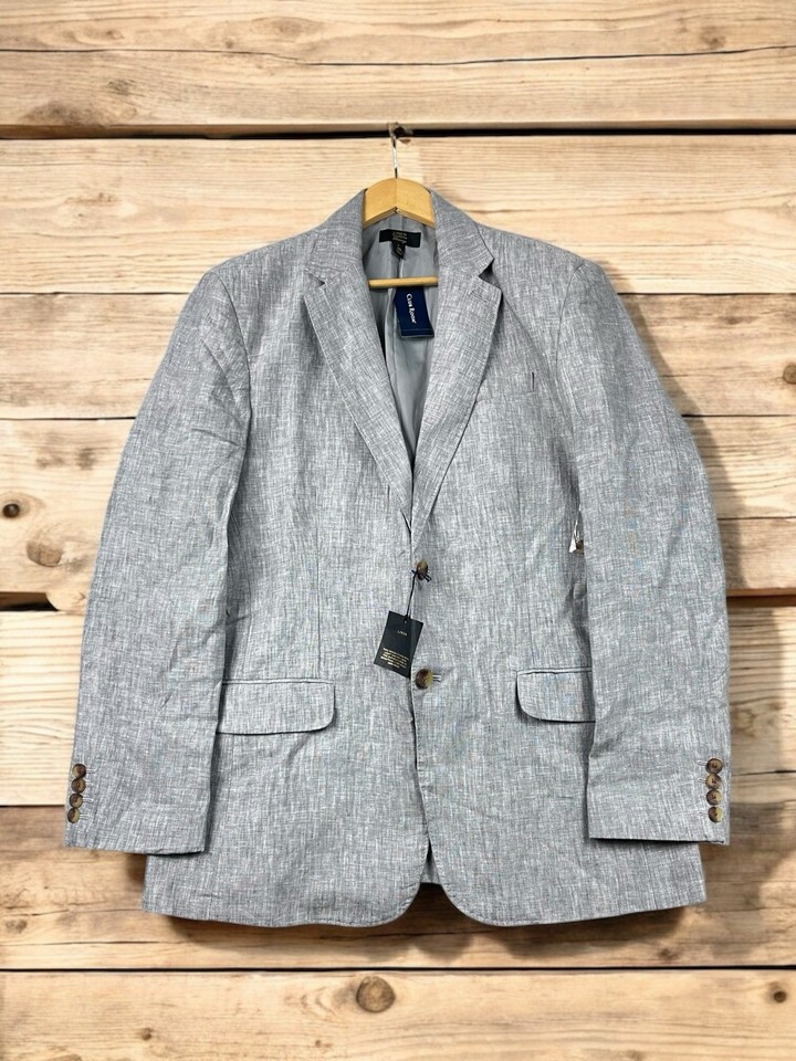Club Room Luxus 100% Leinen Grau Schiefer Sportmantel Blazer Herren Large Business