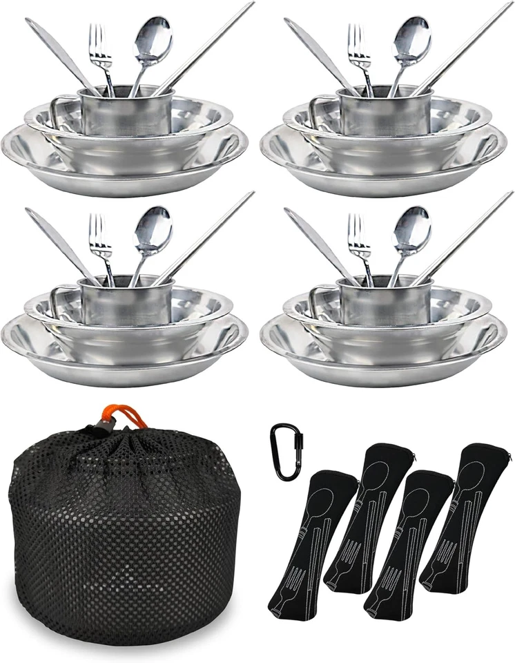 Edelstahl Camping Mess Kit - Komplettes Picknick & Camp Geschirrset für Personen