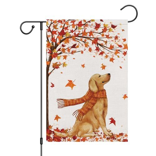 Welcome Fall Maple Garden Flag with Golden Retriever Dog Double 12x18 Inch