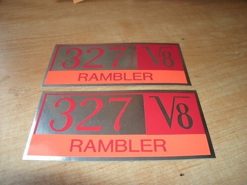 1965 AMC RAMBLER 327 V8 ENGINE VALVE COVER DECALS PAIR