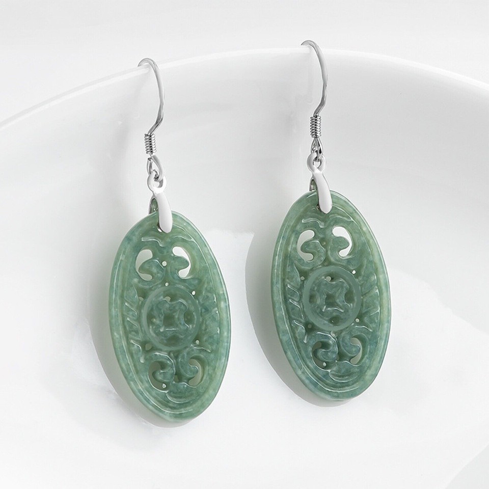 - Natürliche Sterlingsilber Echt-Ohrringe Jade,