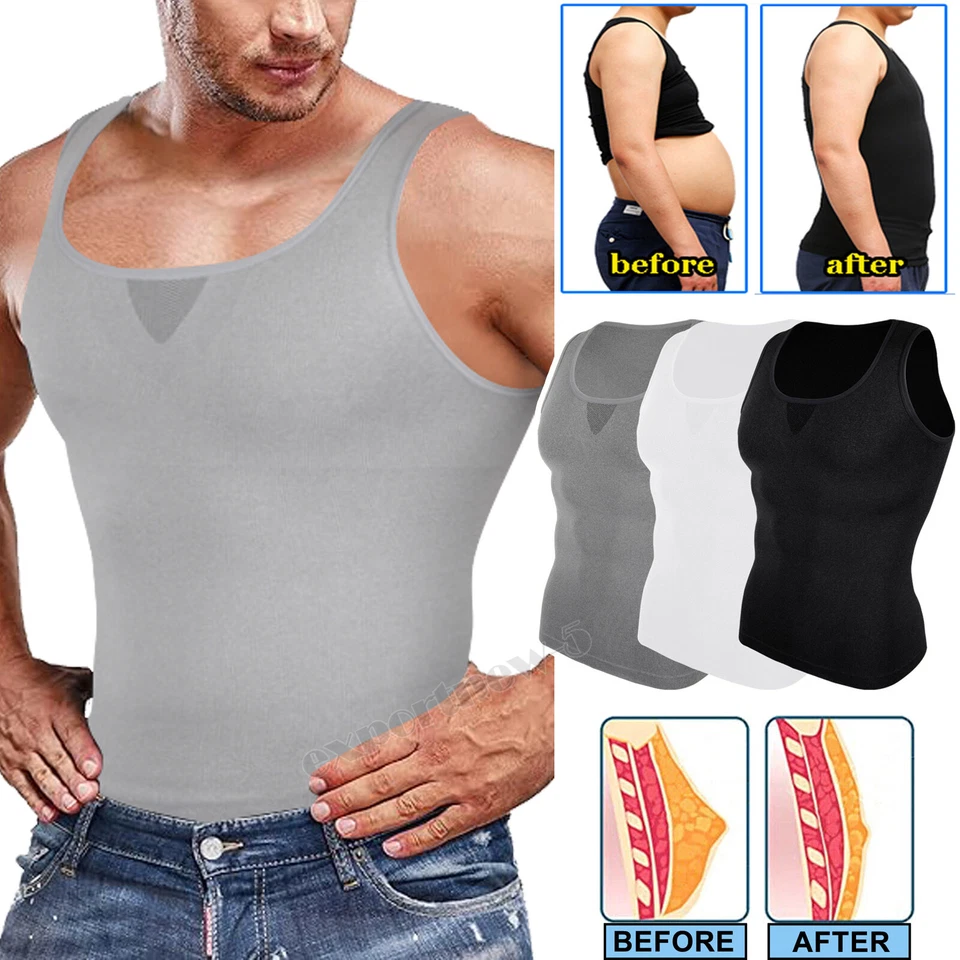 Herren Kompressionssh irt Ärmellos Body Shaper Base Layer Tank Top Schlankmacher Weste