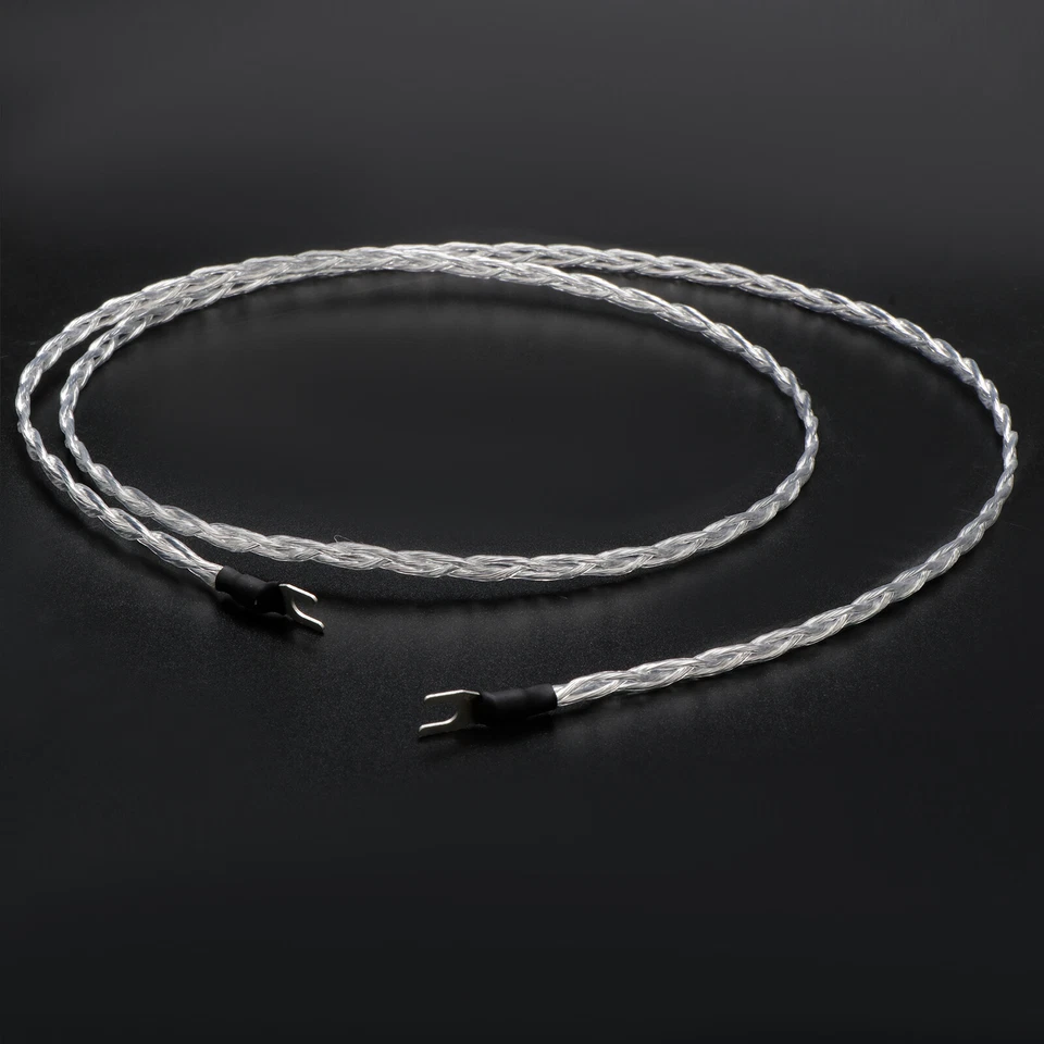 3-adrig versilbert Litze HiFi Audiokabel Massekabel rhodiniert Spatenstecker
