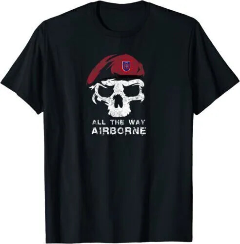 Vintage Army 82Nd Airborne All The Way Skull Maroon Beret T-Shirt S-5XL