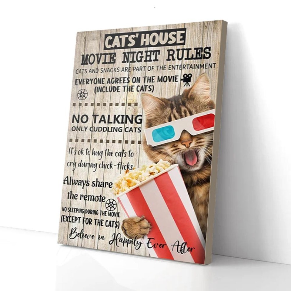 Cat's Movie Night Rules House mattes Poster, Leinwand Wandbild