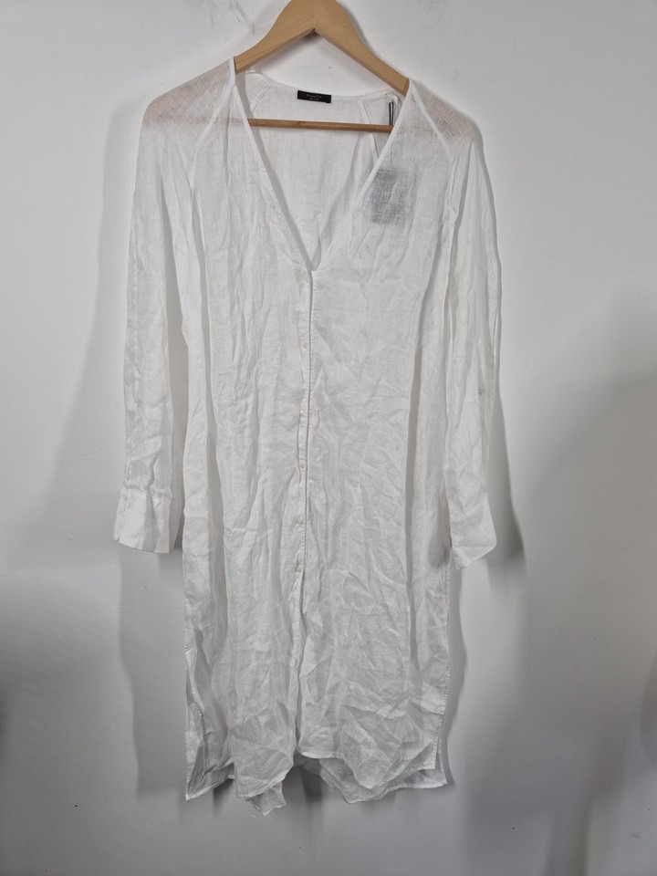 massimo dutti weißes langes Oversize Leinen Kaftan Hemd Gr. M