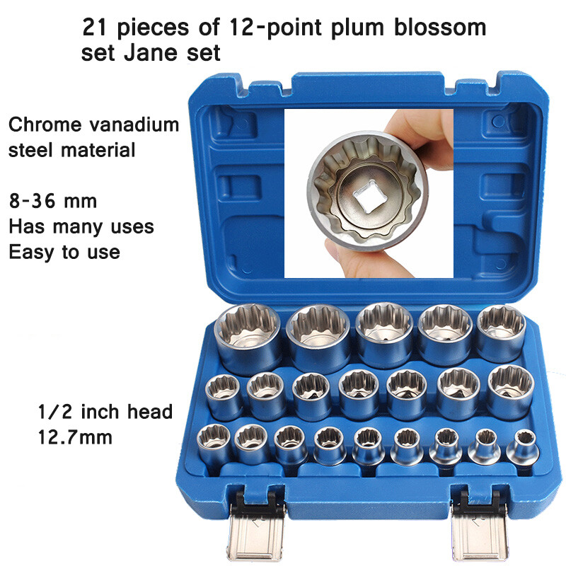 21-tlg. 12-Punkt Pflaumenblüte Steckschlüssel satz 1/2 Zoll 8-36 mm Pflaumenblüte Steckschlüssel kopf