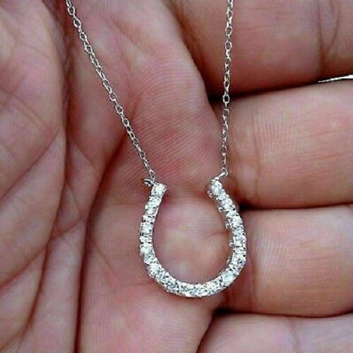2 kt runder, im Labor hergestellter Diamant Hufeisen Anhänger Halskette 14 kt Weißgold-Finis h