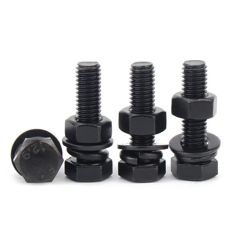 Schwarz Stahl Sechskantschra uben Kappe Kopfschrauben mit Sechskantmutte r flache Federscheiben M6-M12