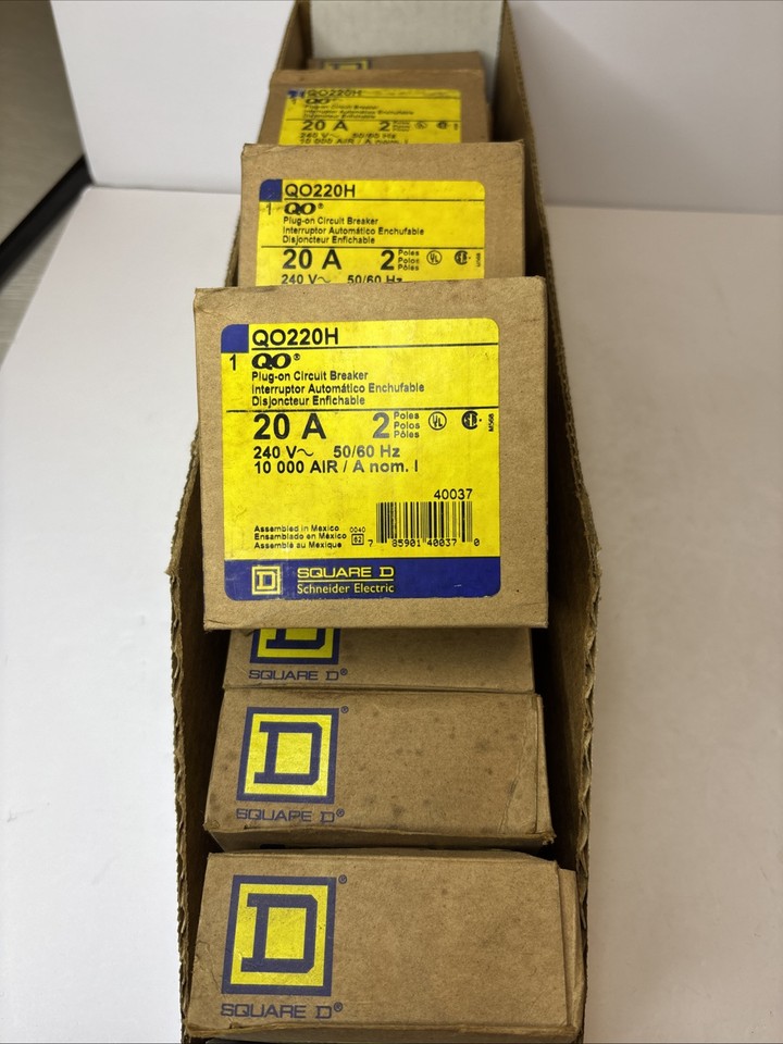(9) Square D, QO220H, 20A, 2P, Plug On, 240V, 10kA Thermischer Magnetschutzsc halter