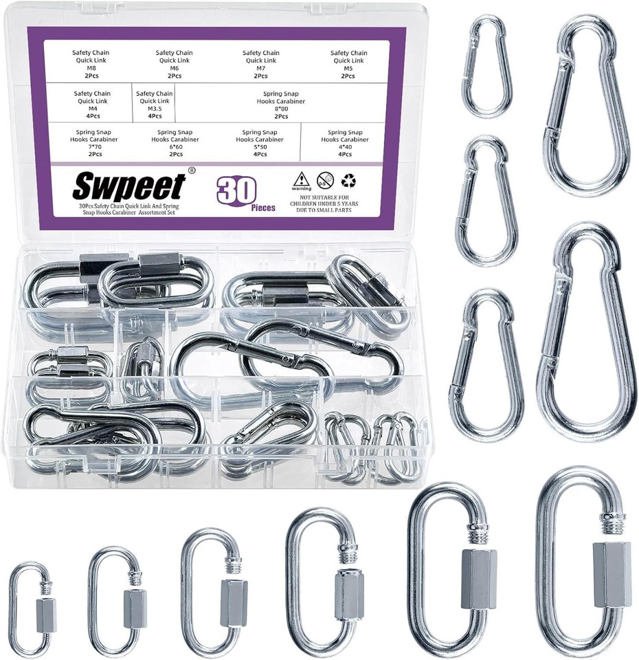 30 Stück M3,5 M4 M5 M6 M7 M8 verzinkt Sicherheitsket te Schnellglied und verzinkte Schnapper