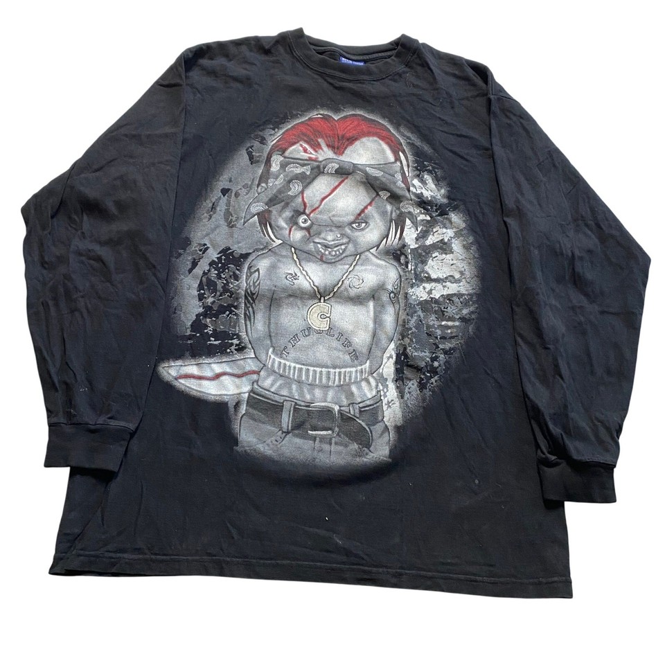 Vintage Y2K Chucky Thug Life Tupac Cartoon Rap Hip Hop Gangster LS T-Shirt Größe 2XL
