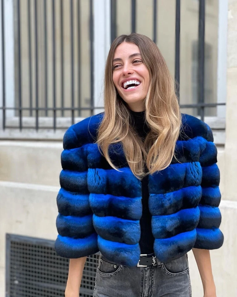 Winter Damen-Mantel Aus Echtem Chinchilla Kaninchenfell Blau Kurz Mädchen Mantel