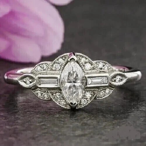 Art Deco Stil 2,5Ct Marquise Cut Lab-Created Diamant Verlobungsring 925 Silber Ring