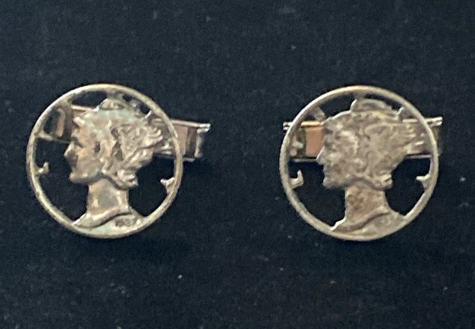 Vintage 1937 geschnitzte Merkur Groschen Manschettenknöpfe