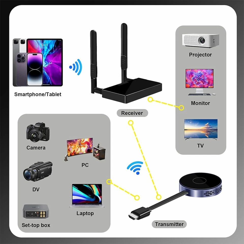 Wireless HDMI Transmitter + Receiver 164ft HDMI Extender Streaming Multi-Screen
