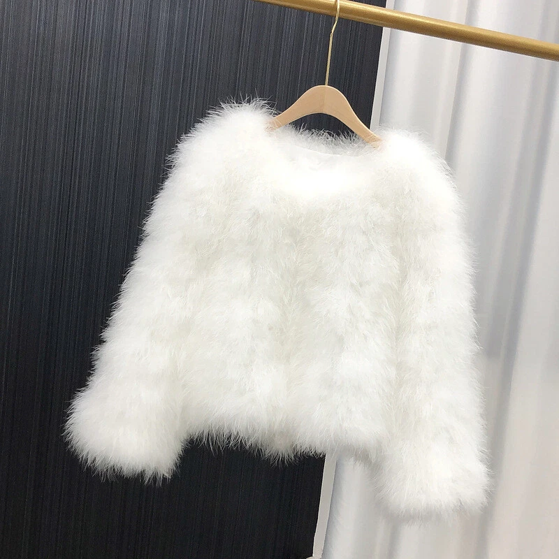 Damen Echt Straußenfeder Pelz Pelz Echt Pelz Mantel Kurzjacke Parka Oberbekleidung