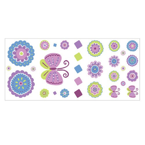 Patchwork lila Blumen und Schmetterling Peel & Stick Wandbild Aufkleber