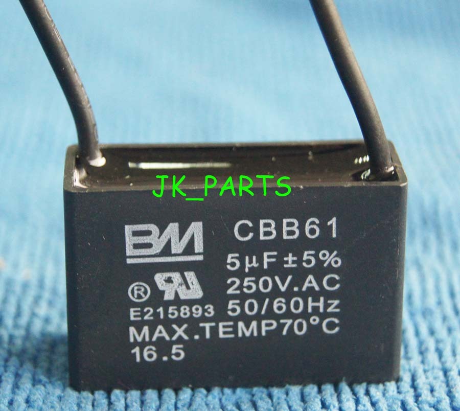 New BM CBB61 5uF 2 WIRE 250VAC Ceiling Fan Capacitor UL CERTIFIED