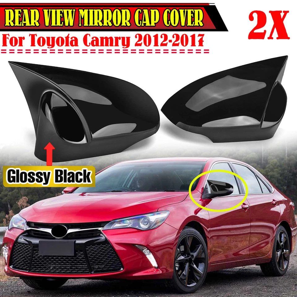 Glossy Black Car Rearview Side Door Mirror Cover Caps For Toyota Camry 2012-2017