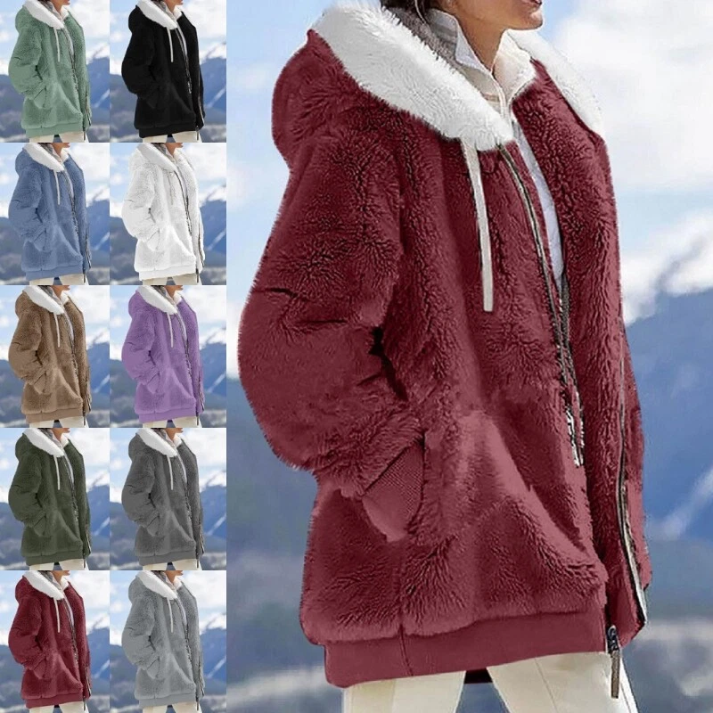 Winter Womens Warm Fleece Hoodies Coat Ladies Outwear Overcoat Plus Size Jacket
