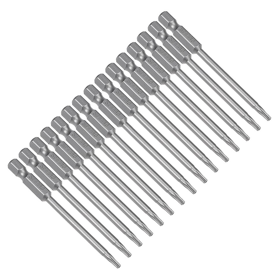 15 Pcs 1/4" Hex Shank TT10 Magnetic Security Torx Screwdriver Bit 75mm Long