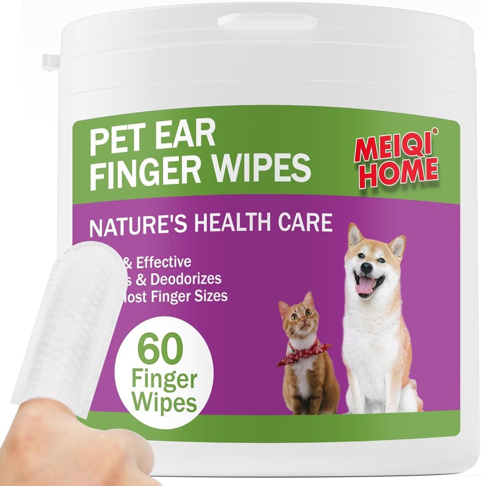 MEIQIHOME 60 Count Dog Ear Wipes Finger,Gently Remove 60 COUNT FINGER WIPES